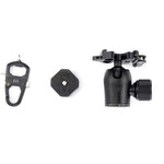 The 3 Legged Thing Darkness AirHed Pro Lever is an Arca-type ball head with a load capacity of 40kg and can be attached to tripods or other support systems that feature a 3/8"-16 mount. Cameras or accessories that are compatible with a 1/4"-20 mount can be connected to the included QR-OCTA Quick Release Plate. The quick-release plate can be attached or removed from the integrated clamp located at the top of the head's ball-and-socket joint by using the clamp's push-and-pull cam lock lever. When opened, the lever can be rotated and flipped over so that when used to lock the clamp, the direction of the lever's motion best suits either a right- or left-handed user.