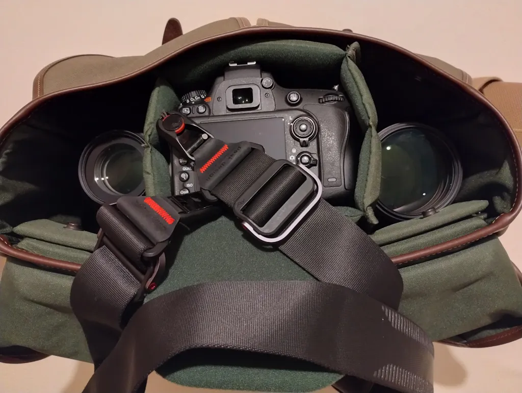 I was initially concerned that the leather joints at the ends of the strap might struggle with the weight but they can handle this and probably a lot more. With my current load they don't even bend.