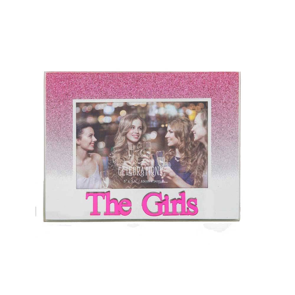 Celebrations The Girls Pink Glitter Glass Frames | Standing Strut | Mirror Finish
