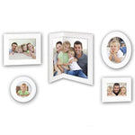 This is a really great idea and dead funky. The corner frame fits into the corner of the room and then there is an 8x6 inch frame which is rectangular, an 8x6 inch frame which is an oval, a rectangular 6x4 inch photo frame and then if that wasn't enough, there is a 5 inch circular frame. Put them together around the corner frame and the effect will be fantastic, as they are white, painted wooden surrounds which are quite chunky at 1.5 inches. Each frame has a small lip on the back, so they hang slightly away from the frame and the photos are easily put into the back of each frame, by removing the back board.
