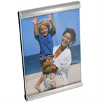 The double bar design means less frame and more photo. The silver strips top and bottom are extremely narrow and hold the photo in place and the strong strut at the back makes sure the frame is secure. The photograph is slipped into the frame once the glass is removed and the silver, plastic retainers make sure that everything stays in place.