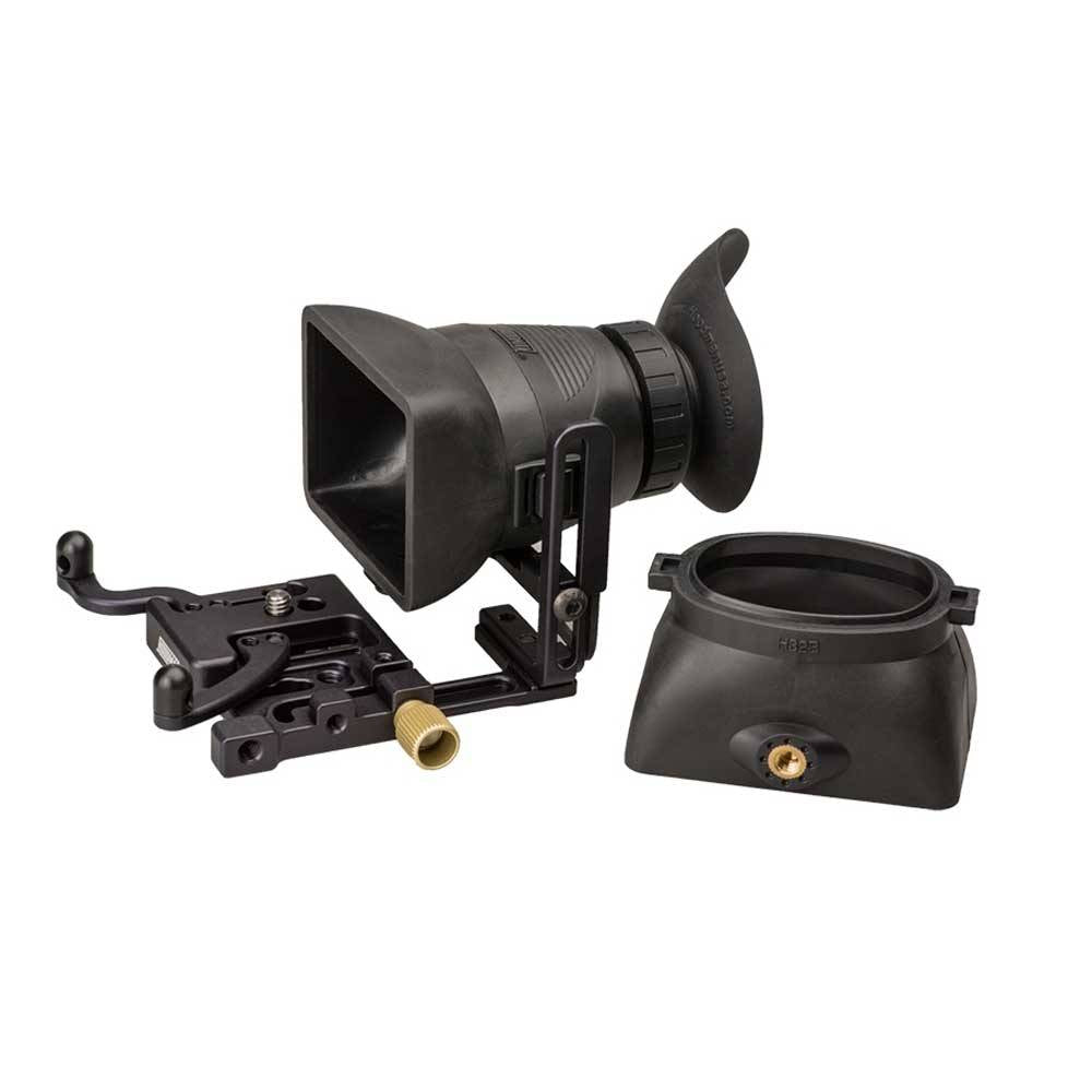 The new HoodLoupe optical module clips on to the 3.2" LCD screen base is included in the kit. HoodLoupes are built with superior glass optics, a + 3 diopter adjustment and a 1/4 20 mounting solution. The base plate provides and elegant way to mount the HoodLoupe for live view and video capture DSLR functions.