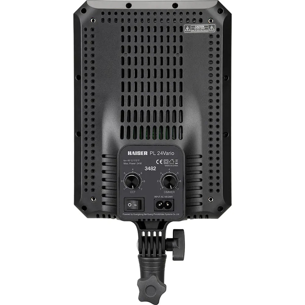 Each PL24 Vario light has a 14.7 × 21.5 cm (5.8 × 8.4 in.) panel with a specially structured diffuser screen, producing soft, evenly scattered illumination while maintaining high brightness. The panels include 240 high-CRI LEDs, providing CRI 97 and TLCI 93, with flicker-free light free from infrared and UV components.