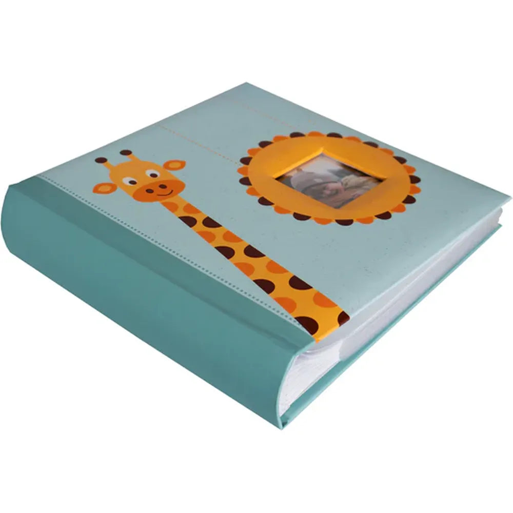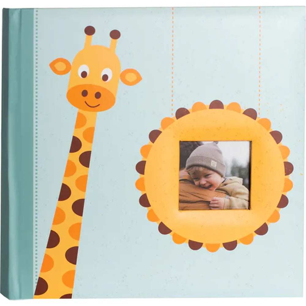 The soft blue-green cover is adorned with a delightful giraffe illustration, adding a touch of warmth and personality. A 5x5cm front picture window lets you personalise the album with your baby’s first smile, scan image, or favourite family photo.