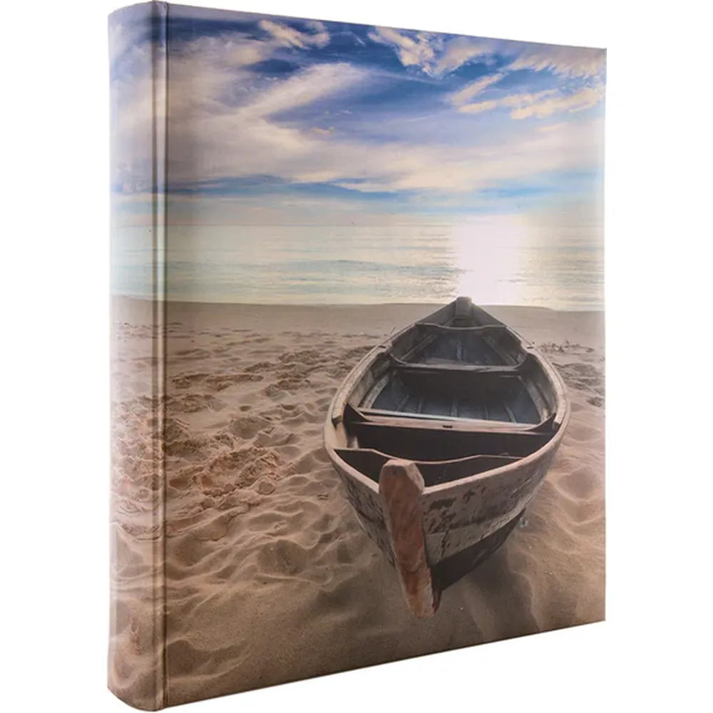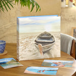 Store the memories of your idyllic seaside escape in the beautifully crafted Kenro Boat Design Holiday Photo Album. Featuring an exclusive art-printed cover with a serene image of a rowing boat resting on a sandy beach beneath the warm sun, this album perfectly captures the calm and nostalgia of a cherished coastal getaway.
