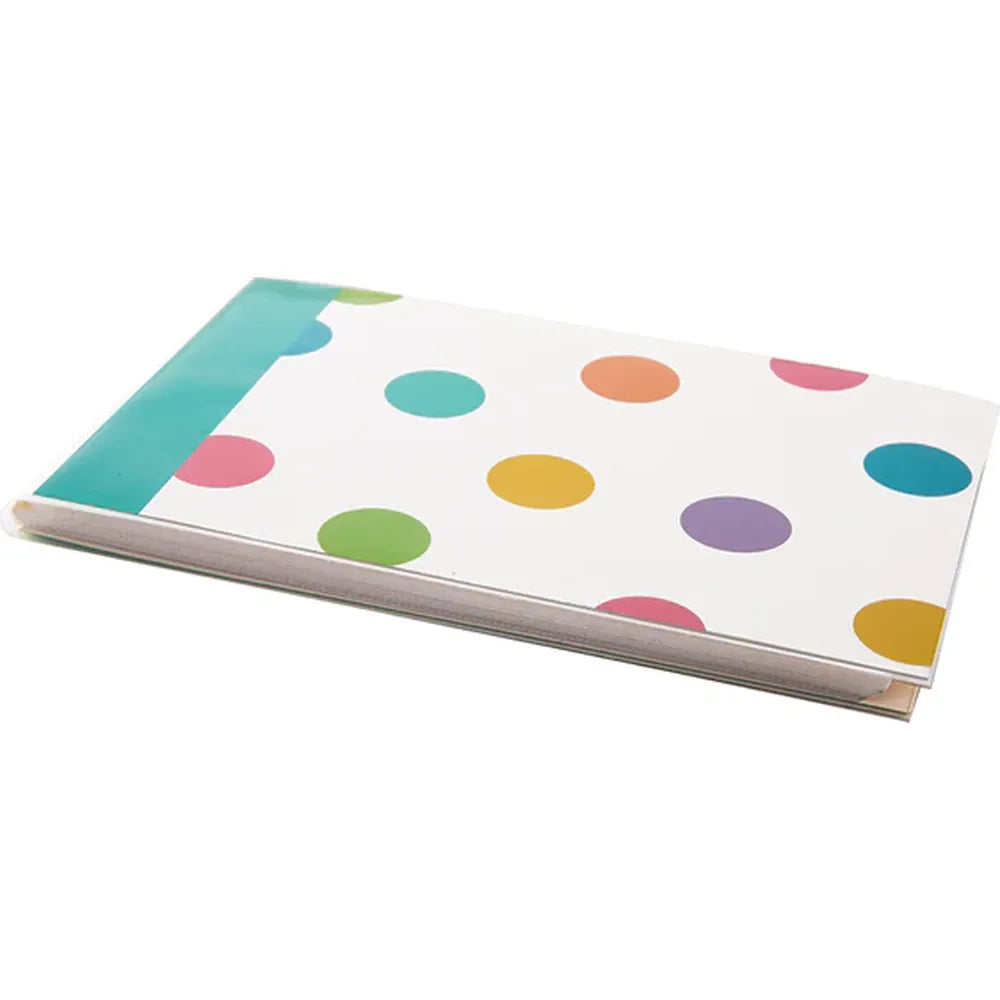 Cherish your favourite memories with the Kenro Candy Spots Mini Slip-In Photo Album. This album features a playful spotted design on a soft off-white background, complemented by a teal green spine. It is perfect for showcasing family photos, holiday memories, or everyday snapshots.