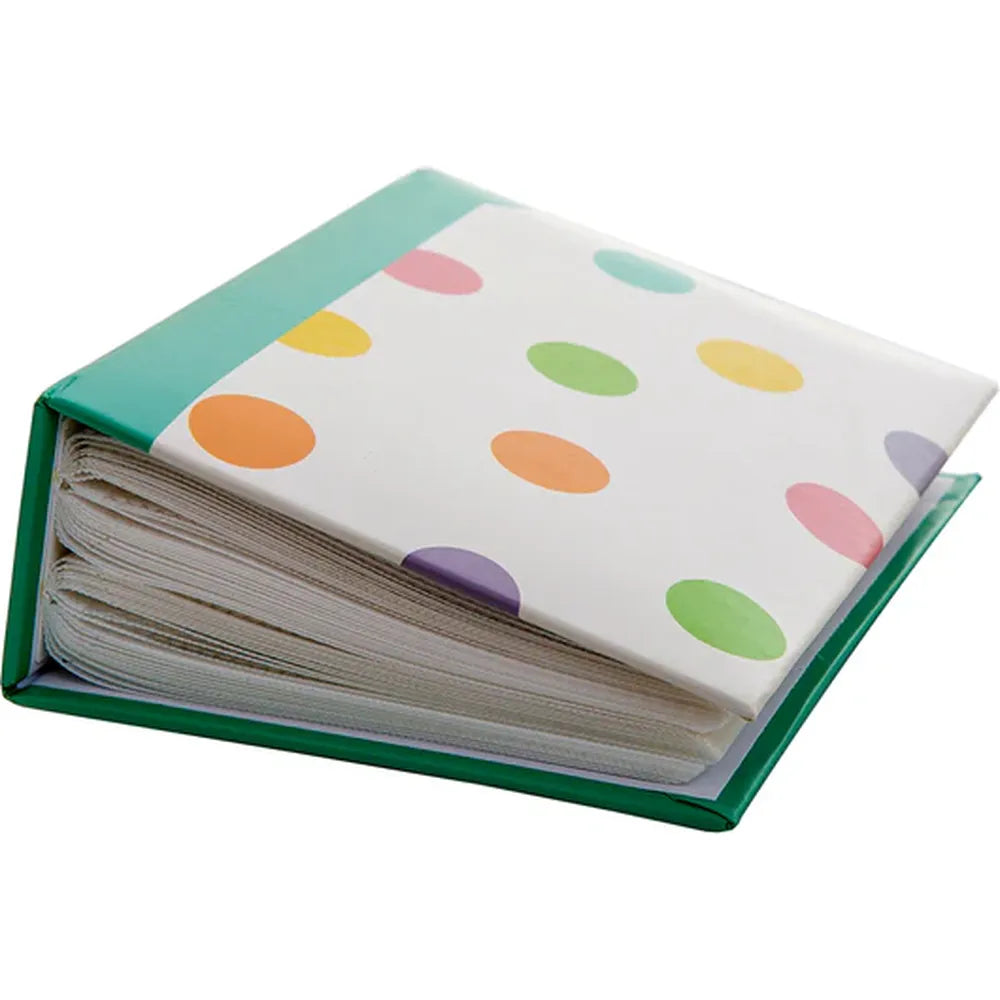 Bright, cheerful, and perfect for treasuring your favourite memories, the Kenro Candy Spots Minimax Slip-In Photo Album features a lively pattern of colourful spots on a soft off-white background, complemented by a stylish teal green spine. Its playful design makes it ideal for family photos, holidays, special occasions, or everyday snapshots.