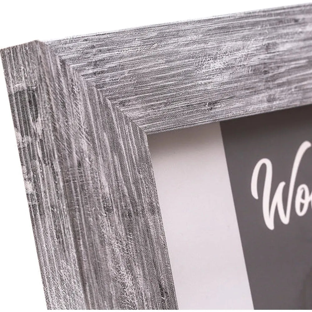 Designed with a 28mm wide profile, it features a subtle wood grain effect and a whitewashed look, creating a softly aged, woodland-inspired appearance. The single aperture frame includes a sturdy easel back for freestanding use and wall hooks for flexible hanging.