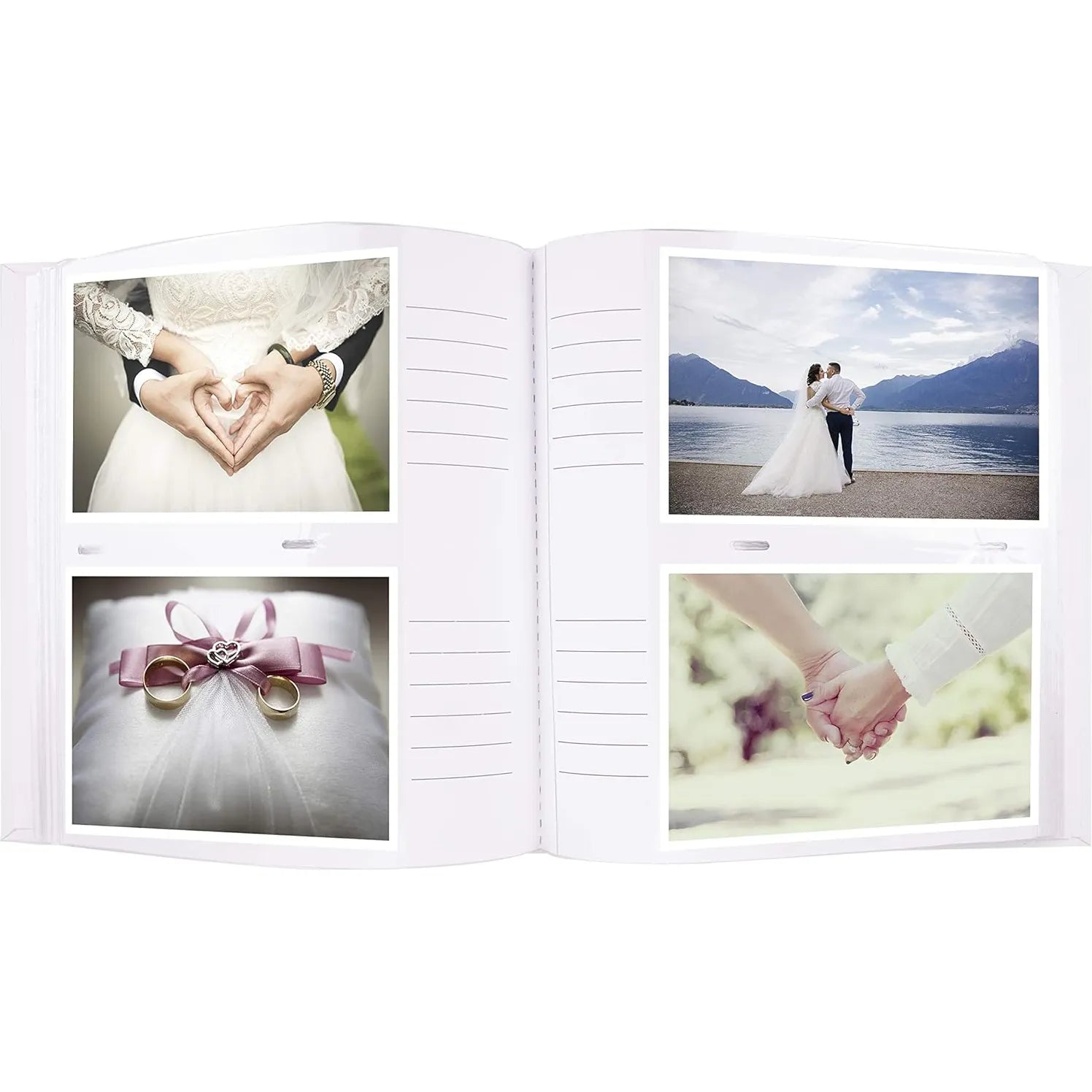 Designed as a memo album, it holds up to 200 standard 6x4" (10x15 cm) photographs, with discreet writing space beside each photo for personal notes, dates, or messages. Supplied in a crystal top gift box, the Kenro Pearl Wedding Rings Photo Album combines style, functionality, and presentation, creating a keepsake that will be treasured for years to come.