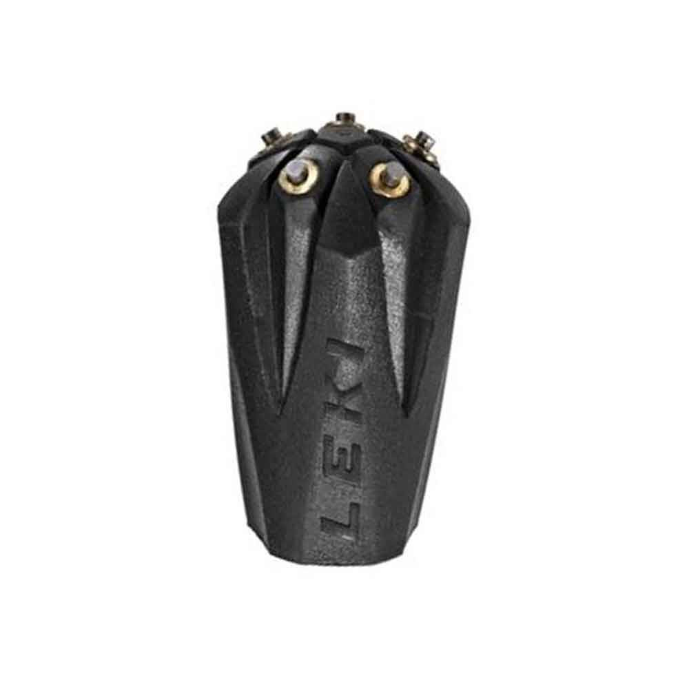 Leki Rubber Buffer Silent Spike fits over the tip of the Leki walking pole and lowers the noise of each pole plant as you walk. 5 integrated carbide pins provide a secure hold on the ground and these pads also provide extra shock absorption thanks to the rubber pad.