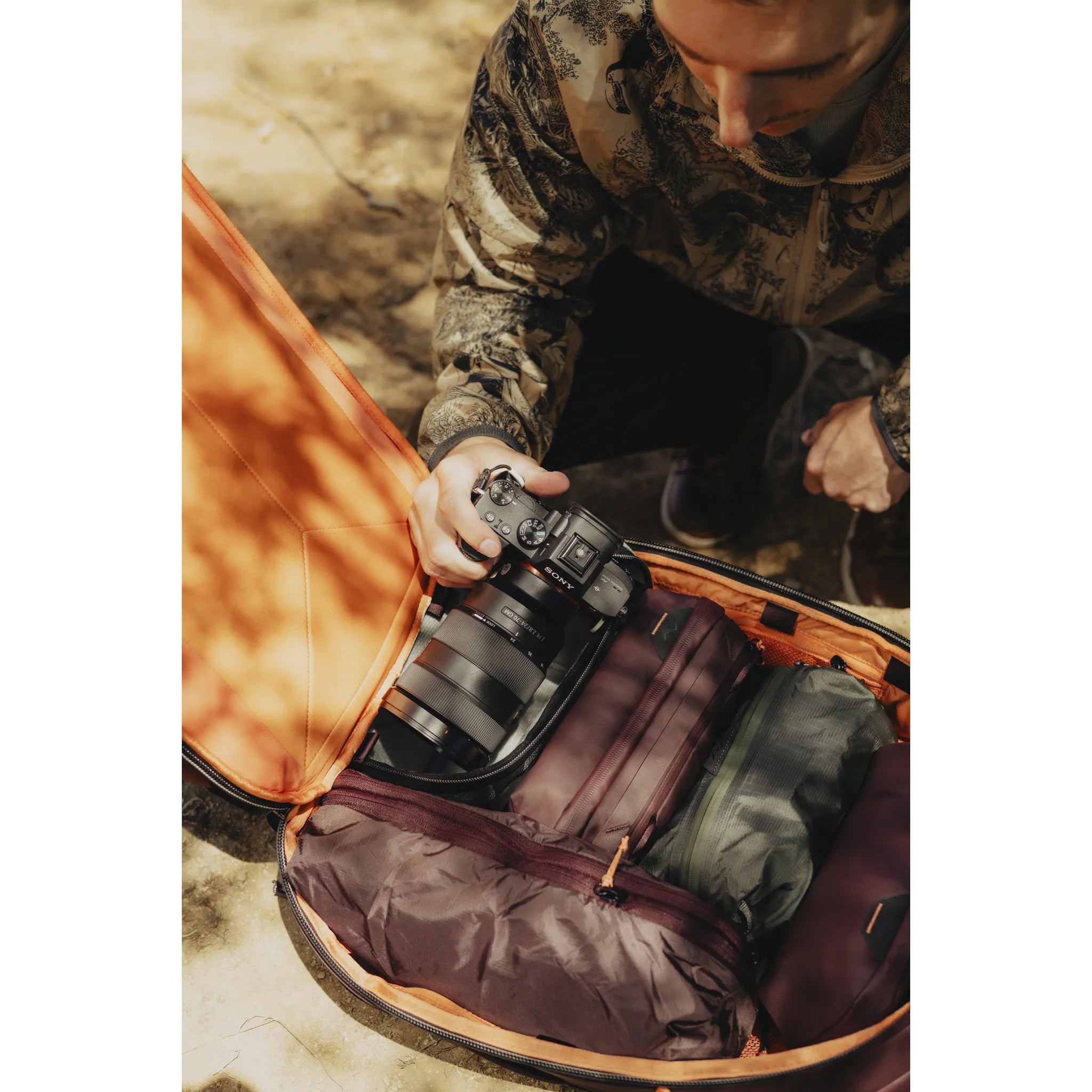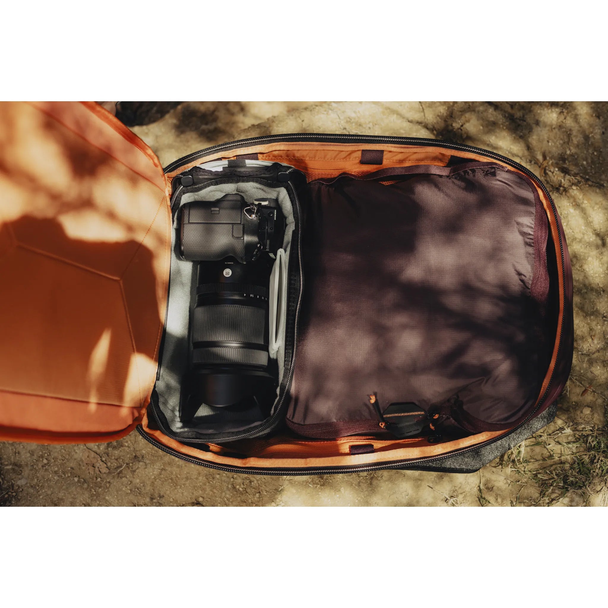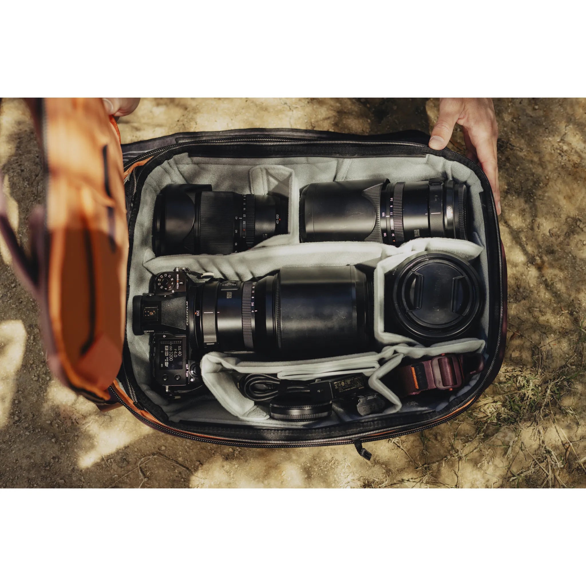 Works seamlessly with Peak Design Packing Cubes and pouches (sold separately). Fits Peak Design Camera Cubes, but only in its expanded form. The larger 45L Backpack is better for Photography equipment carrying.