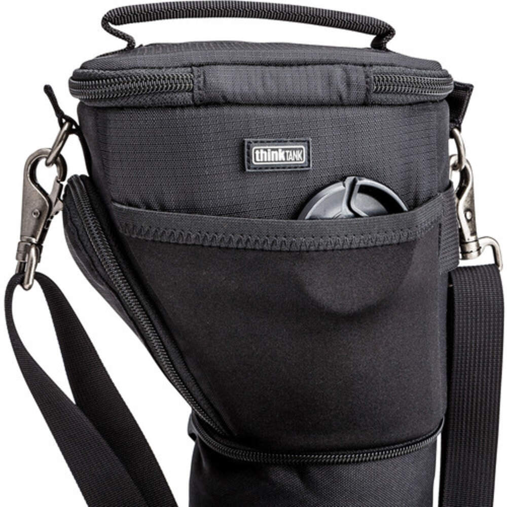 The Think Tank Digital Holster 10 V2.0 Expandable Shoulder Bag is an excellent, highly organised compact bag. Perfect for a Compact DSLR or a small camera body with kit or small prime lens attached. A quick, top opening zippered compartment provides quick and easy access to your equipment. The Digital Holster 10 V2.0 features the 'Pop Down' system, this increases the bags height for a lens hood or a telephoto lens. On the inner side of the top lip, there is a small accessory pocket for memory cards and lens clothes and a zippered side pocket is for larger accessories such as batteries and cables. This shoulder bag attaches to all Think Tank belts and bags with Modular Rails and also a side attachment rail so it can a small Modular or Skin component can be connected to the holster. Carry this bag using the top grab-handle or with the included shoulder strap or belt mount. Includes a seam-sealed rain cover to protect your gear in bad weather conditions.