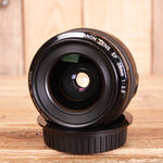 This classic Canon EF 28mm F2.8 prime lens delivers sharp, versatile wide-angle performance for both film and digital EOS cameras. The fixed f2.8 aperture provides reliable light gathering and consistent depth control across various shooting conditions. Its compact, lightweight design makes it ideal for travel and everyday photography. As a used example, this lens represents excellent value for photographers seeking a dependable wide-angle option without premium pricing. The 28mm focal length suits landscapes, environmental portraits, and street photography with natural perspective. A proven workhorse from Canon's extensive EF mount catalogue.
