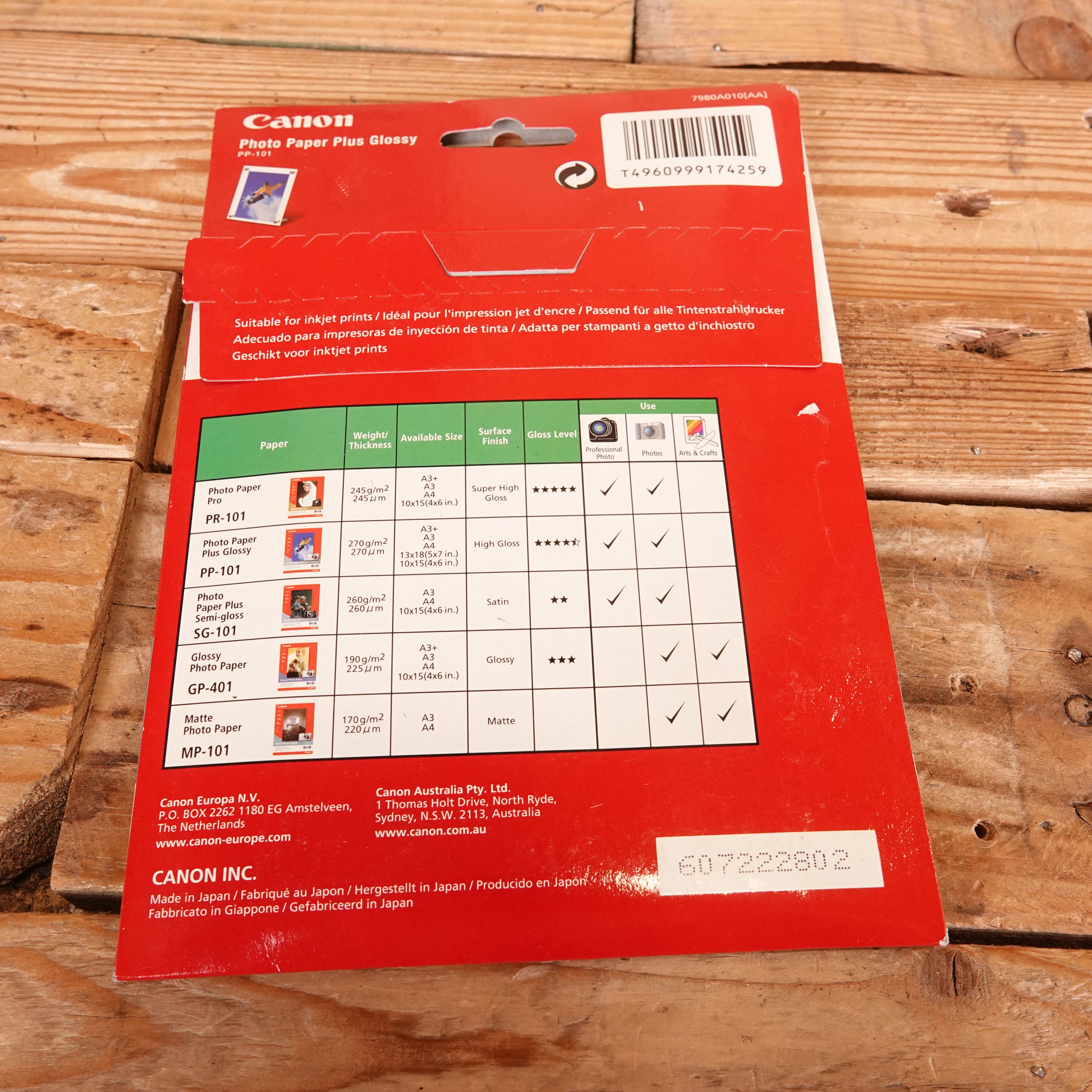 Used Canon Photo Paper Plus High Gloss 10x15cm 20 Sheets - 10 Packs - Unopened