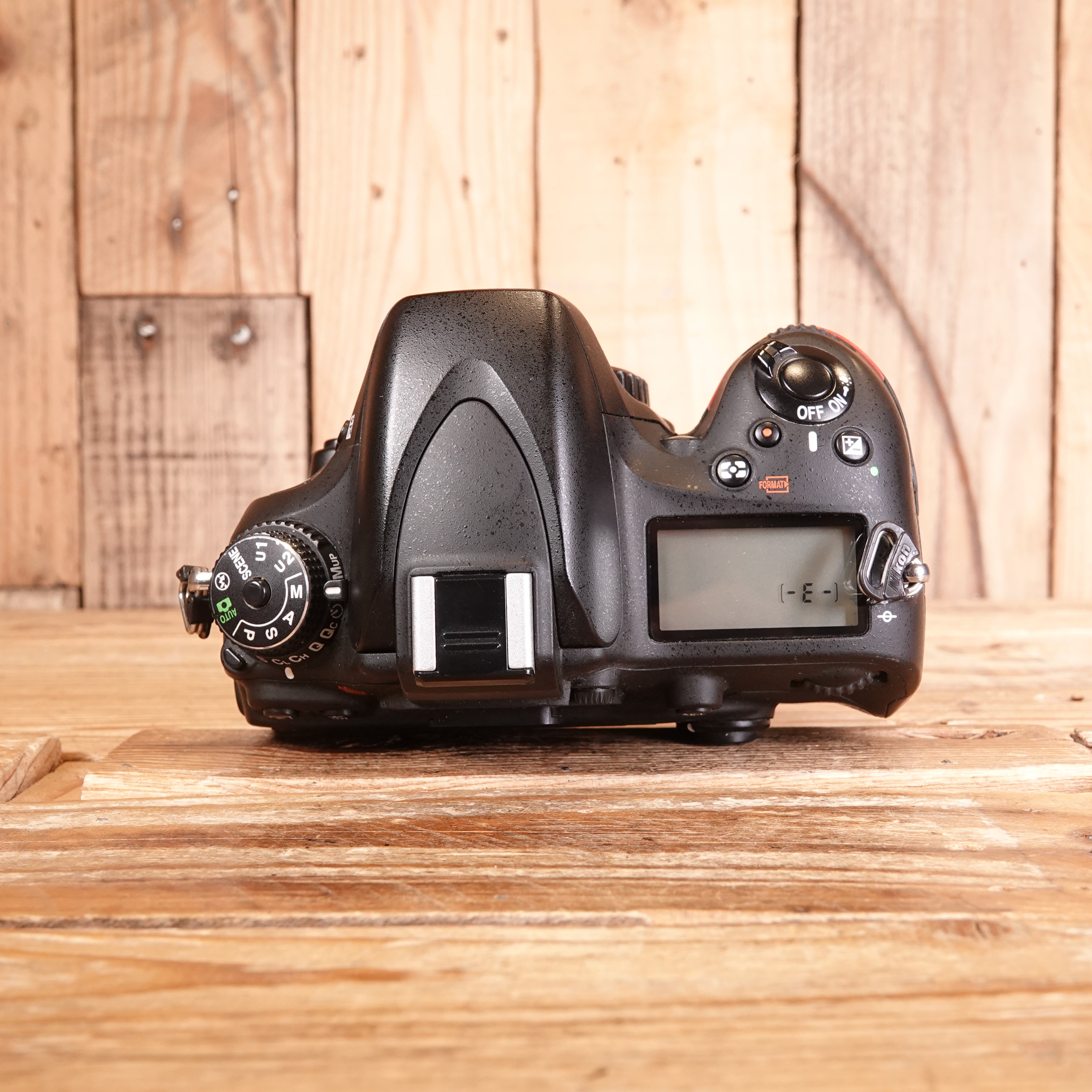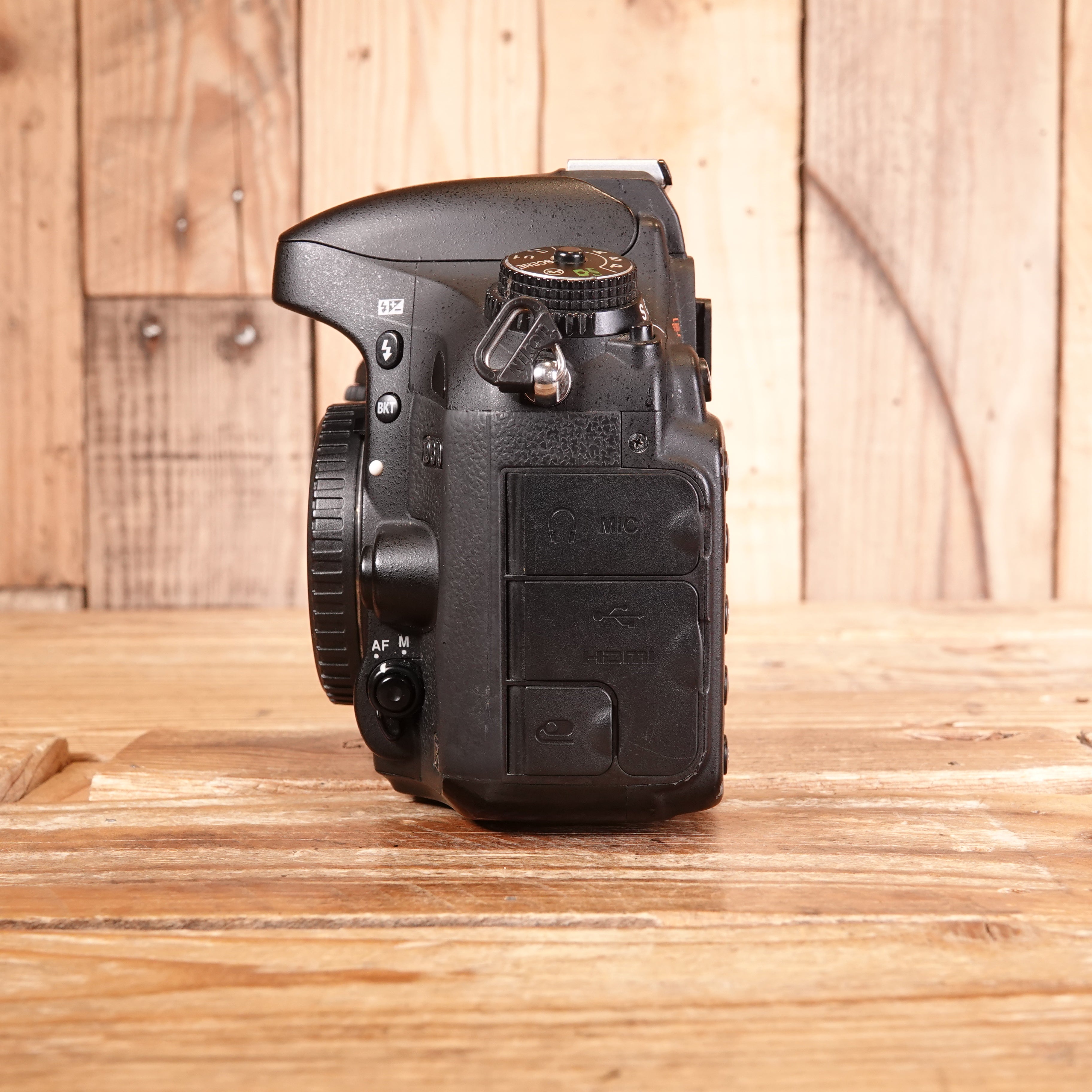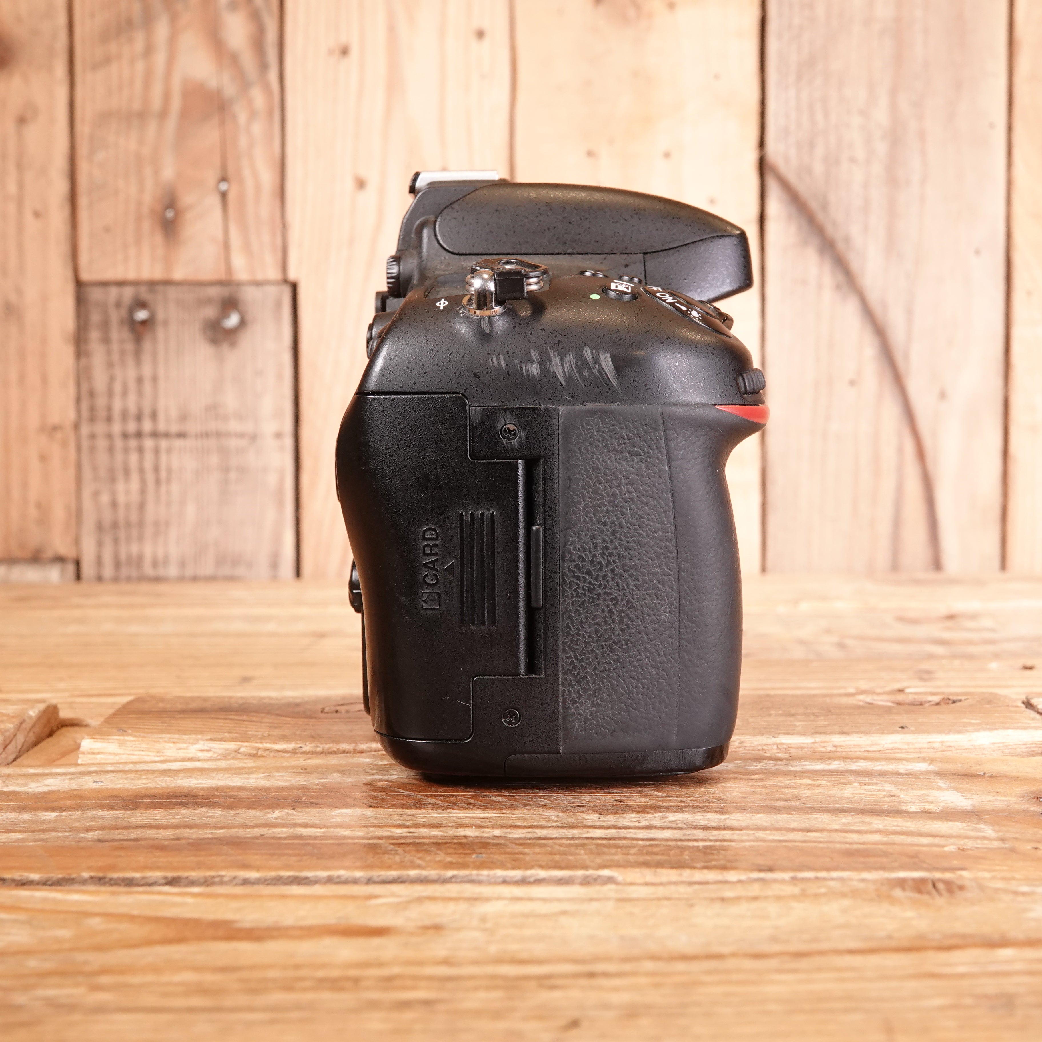 With 3rd party strap, scuffs to the side of the camera and is missing the eyecup