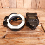 Compact ring flash designed for macro photography with Pentax DSLRs. The Sigma EM-140 DG delivers consistent TTL metering and balanced illumination for close-up work, eliminating harsh shadows typical of standard flash units. Features dual flash tubes positioned around the lens barrel for even light distribution. Ideal for product, nature, and detail photography where precision lighting matters. This used unit offers excellent value for photographers seeking professional macro capabilities without premium pricing.