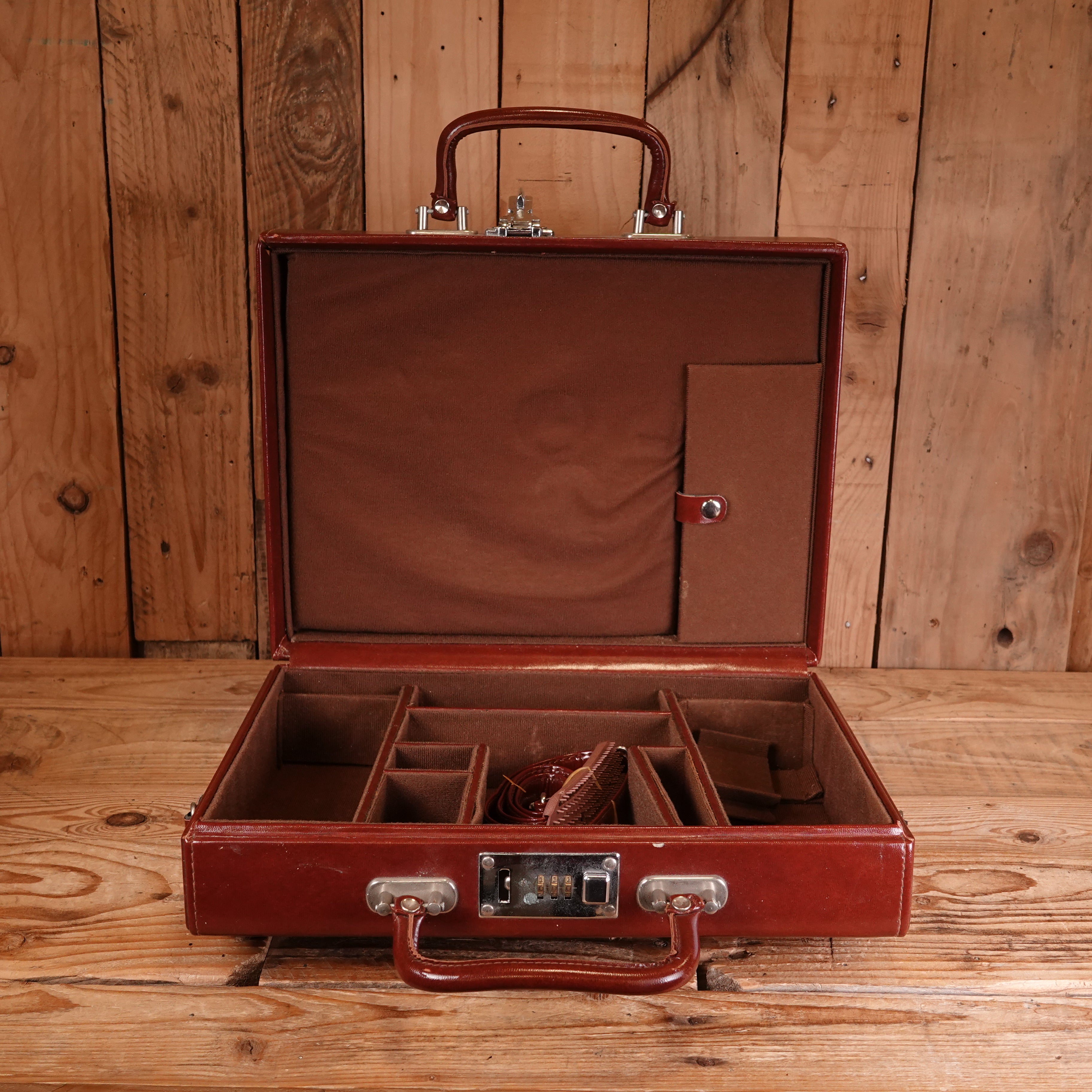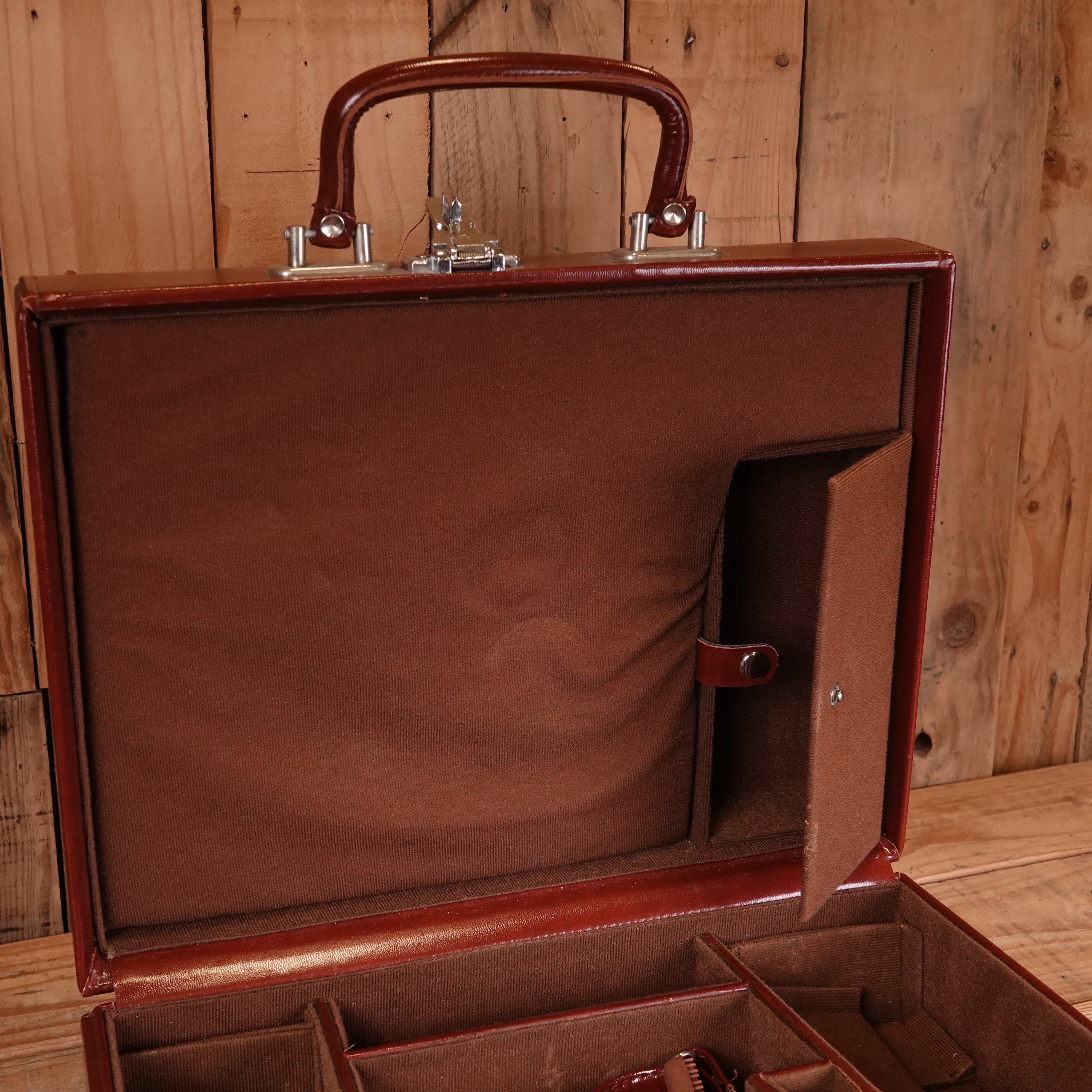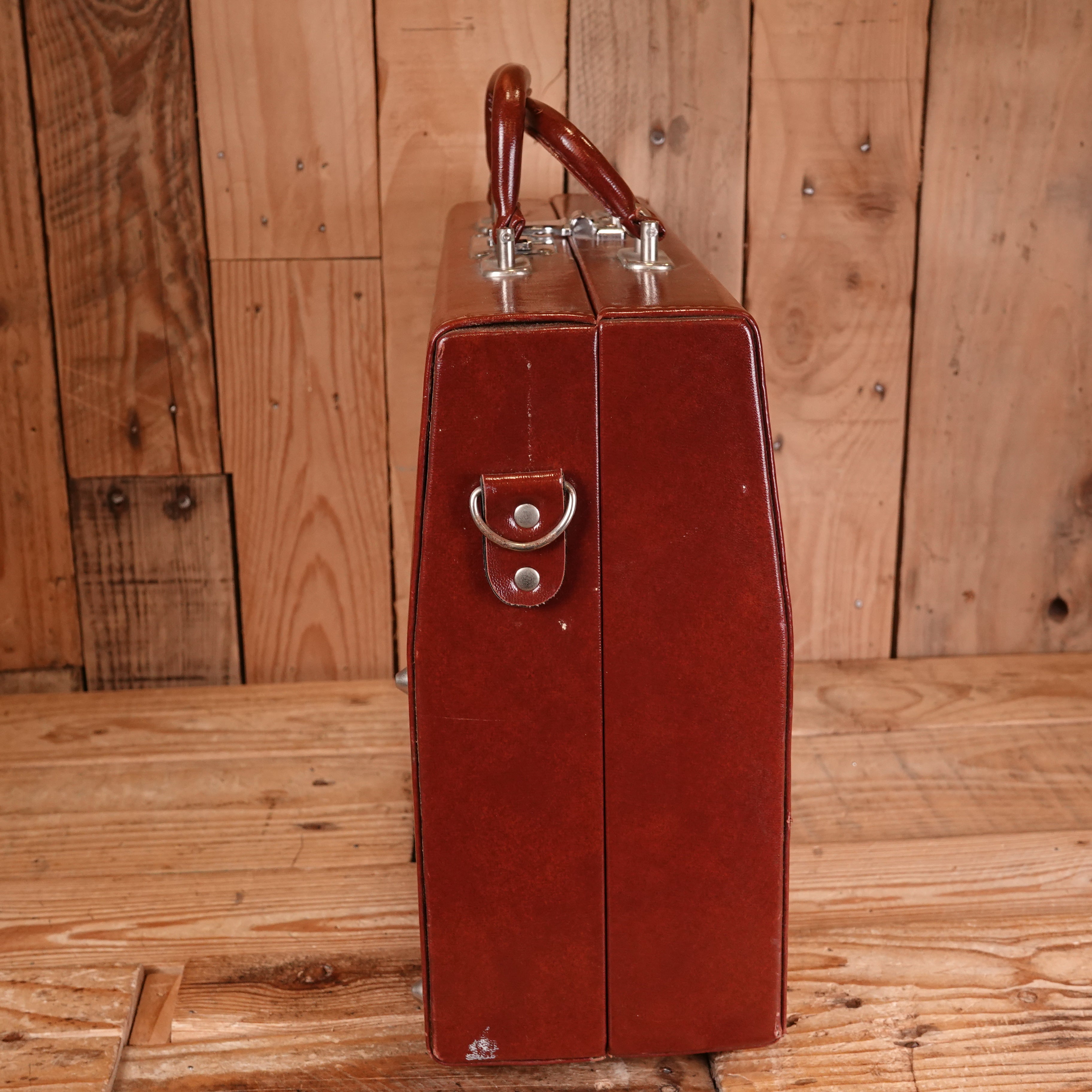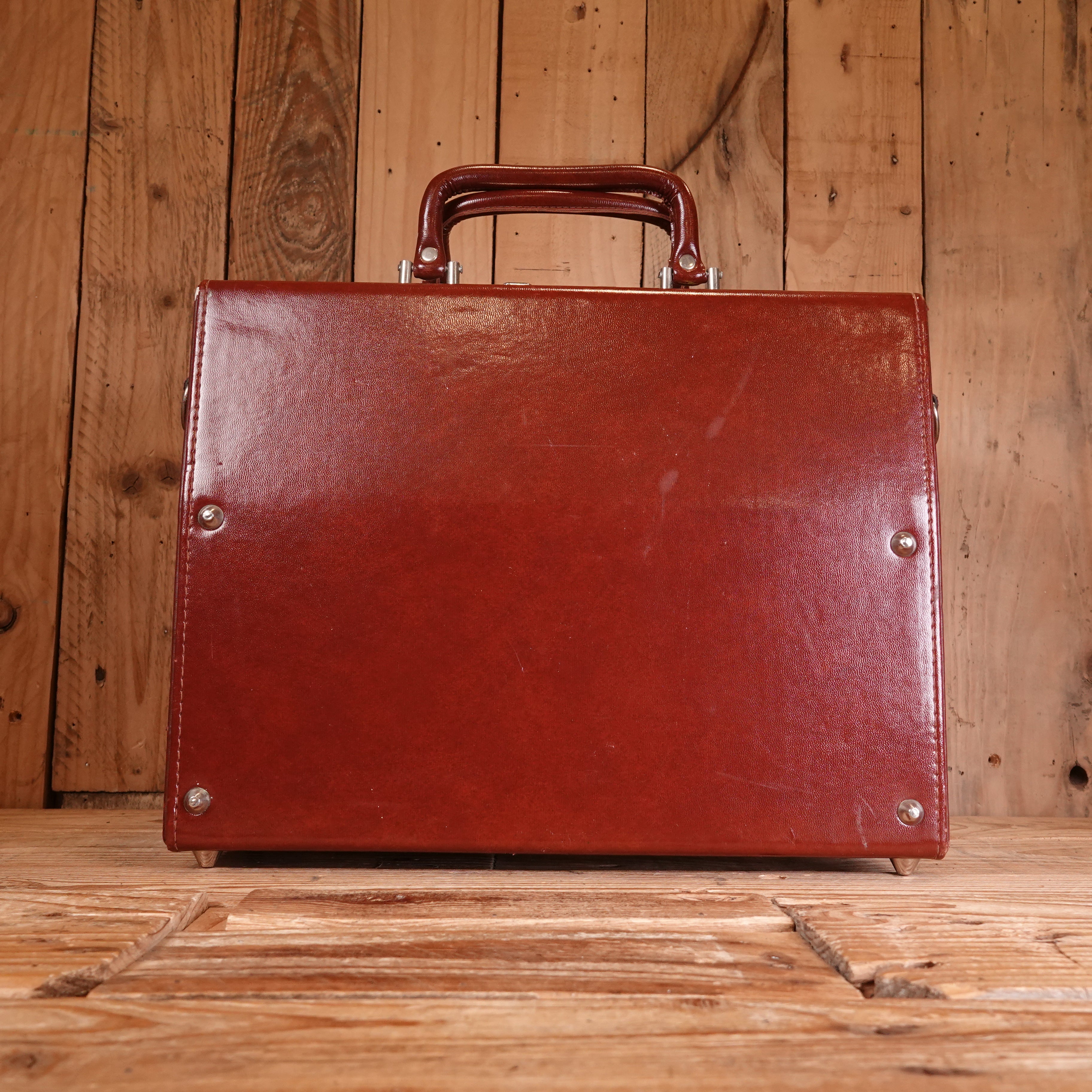 This vintage brown leather carry case offers practical protection for your 35mm rangefinder camera and accessories. Crafted from genuine leather that develops character with age, the case features a secure closure and comfortable carrying handle. The compact design accommodates most rangefinder bodies alongside lenses and film, making it ideal for photographers who value portability without sacrificing gear security. Shows authentic patina consistent with its pre-owned condition. A functional choice for enthusiasts seeking traditional storage solutions that complement classic camera systems.