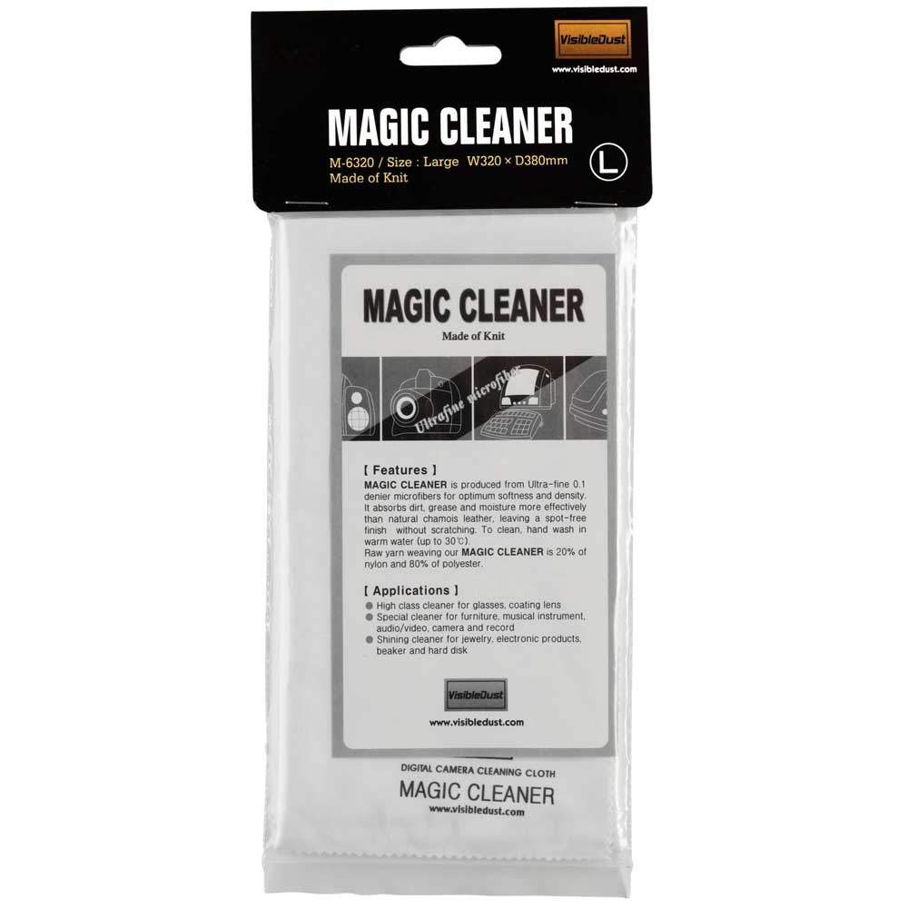 Produced from ultra fine 0.1 denier microfibers for optimum softness and density VisibleDust Magic Cleaner cloths are perfect for cleaning camera optics such as lenses and viewfinders. These cloths absorb dirt, grease and moisture more effectively than natural chamois leather, leaving a spot-free finish without abrasions. It is recommended to use Magic Cleaner in conjunction with Lens Clean™ for a comprehensive optical surface cleaning. VisibleDust Magic Cleaner large cloth (1).