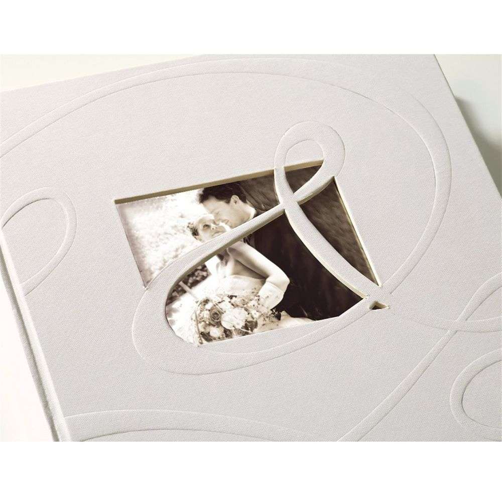 Measuring approximately 12 x 12 inches overall, the Walther Ti Amo Wedding Traditional Photo Album is a beautiful album and has 30 acid-free photoboard, book-bound pages (60 sides). It has a modern feel to it with a linen effect and pearlised cover and there is an aperture measuring approximately 4.75 x 4 inches on the front in which you can put a photo of your choice. The self-pattern swirl cleverly crosses the aperture giving an unusual effect.