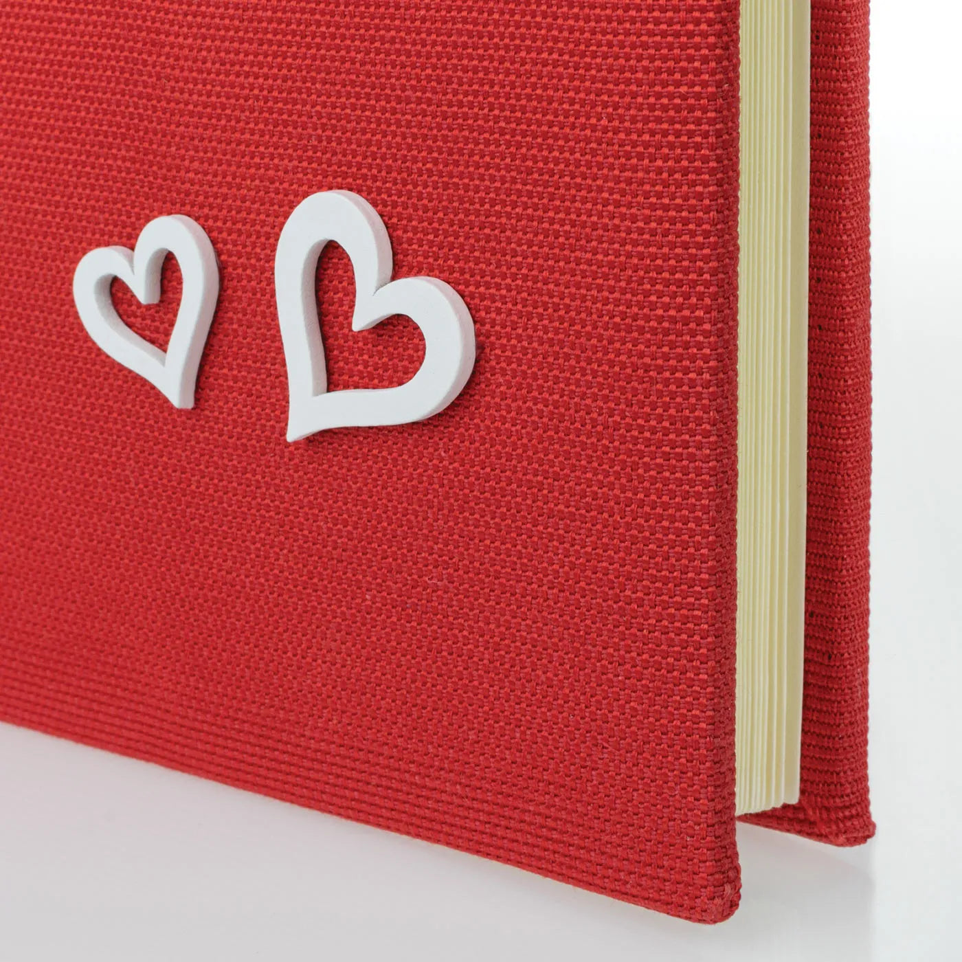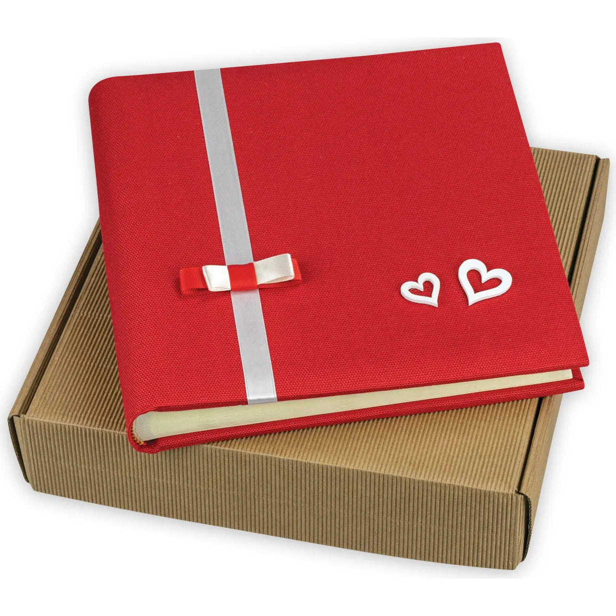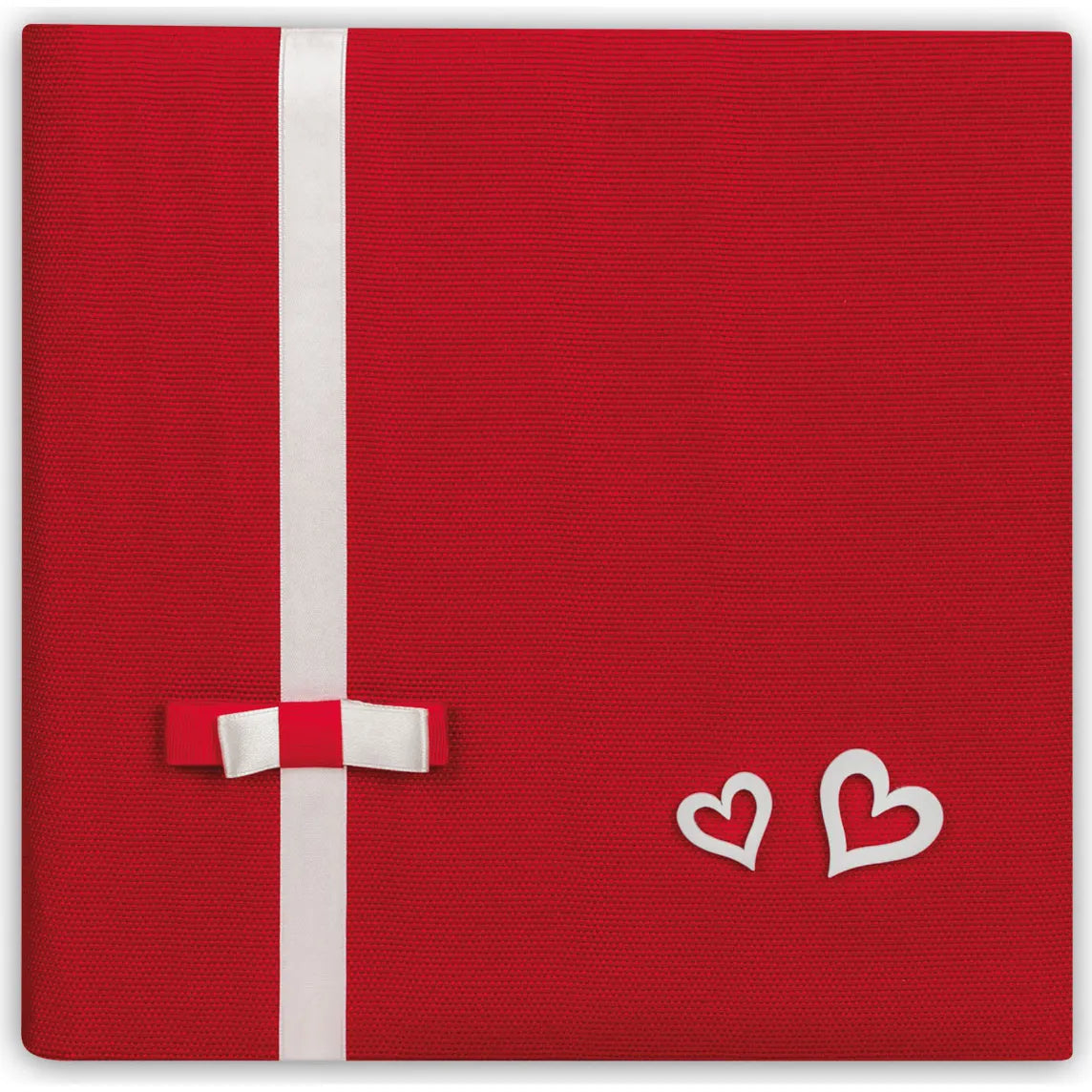The ZEP Kerry Red 30 x 30 Photo Album is a traditional bookbound album designed for preserving your favourite memories. Beautifully handcrafted in Italy, it features a red cotton cover with charming decorative touches including a fabric bow and white wooden hearts, giving it a romantic, love-themed feel. Inside, the album contains 30 cream card pages, each with protective pergamin pages to safely store your photos. Ideal for sticking in your pictures, this 26 x 26.5 x 4 cm album offers a stylish and heartfelt way to collect and display your cherished moments.