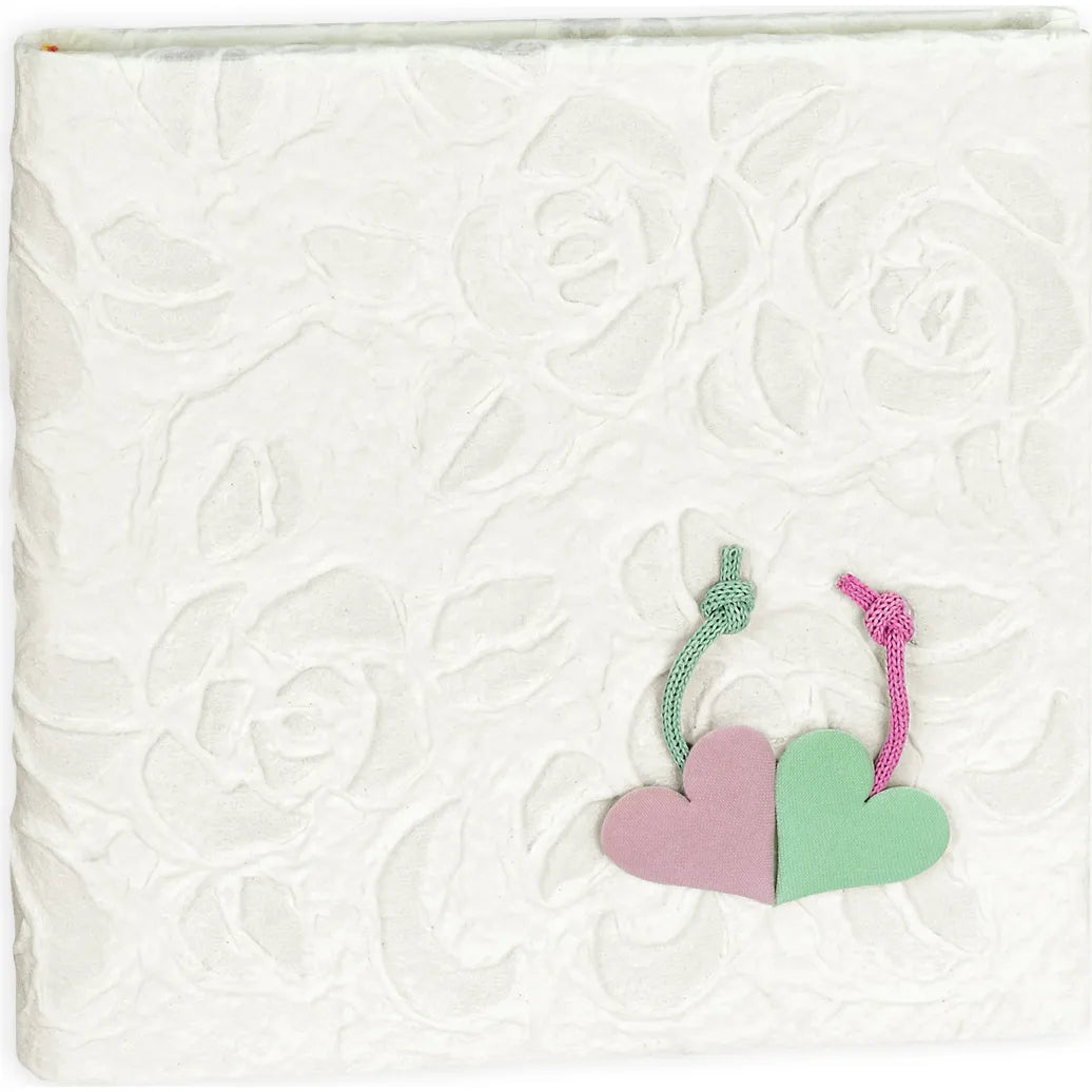 The ZEP Symphony Wedding Heart Photo Album is a beautifully handcrafted bookbound album made in Italy. Featuring 14 traditional cream-white pages, it offers elegant space to preserve cherished wedding memories. The album has a classic white cover with a charming fabric heart-shaped decoration, adding a romantic touch. With external measurements of 24 x 24.2 x 2 cm and sheet size of 23 x 23 cm, it's perfect for storing your most treasured photos from the big day. Designed in a timeless style, this album is ideal for keeping your wedding moments beautifully displayed and lovingly remembered.